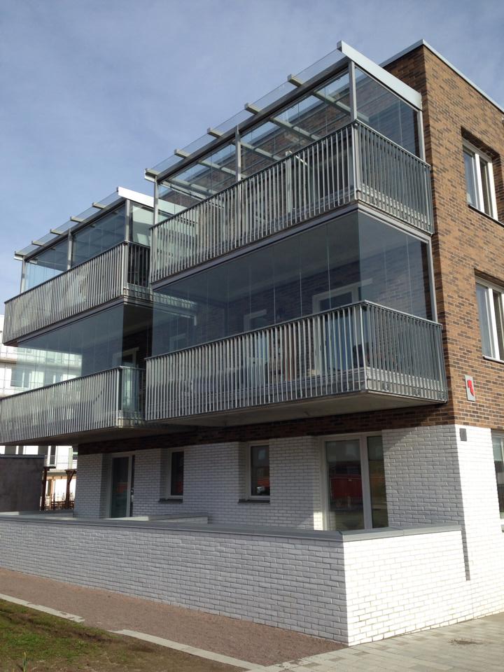 Näst intill osynlig balkonginglasning som saknar vertikala profiler. Fästes i räckeshöjd.